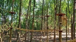 Timber Trek Adventure Experience for one from Tree Trekkers Aerial Adventures and Zipline Park. The Timber Trek Course offers 16 different high ropes trails all originating from a main start platform. Trails move in a linear direction and land in various areas throughout the park. Climbers navigate their way through a series of elements/obstacles as they move from platform to platform within the trees.