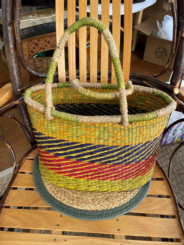 Handmade African handled basket, 16 1/2x12 1/2x10".