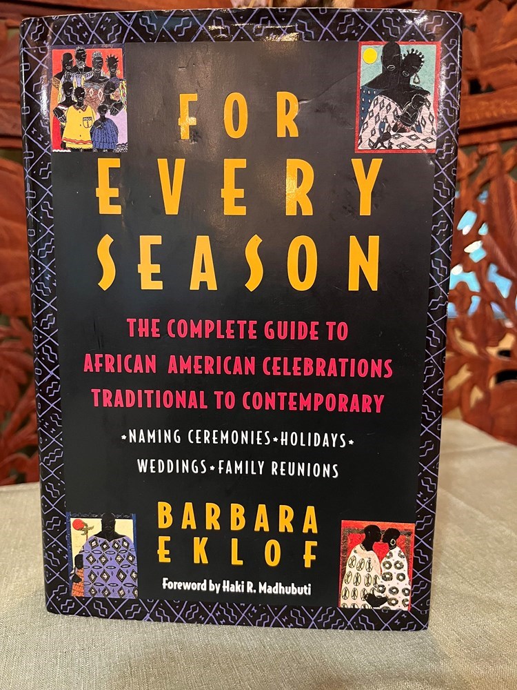 Written by local author Barbara Eklof and donated by the author's daughter. African traditions are a growing part of black culture and are especially significant to young people seeking a link with their heritage. In For Every Season, Eklof reviews the ceremonies of ancient Africa and America that surround four major passages of the human experience.