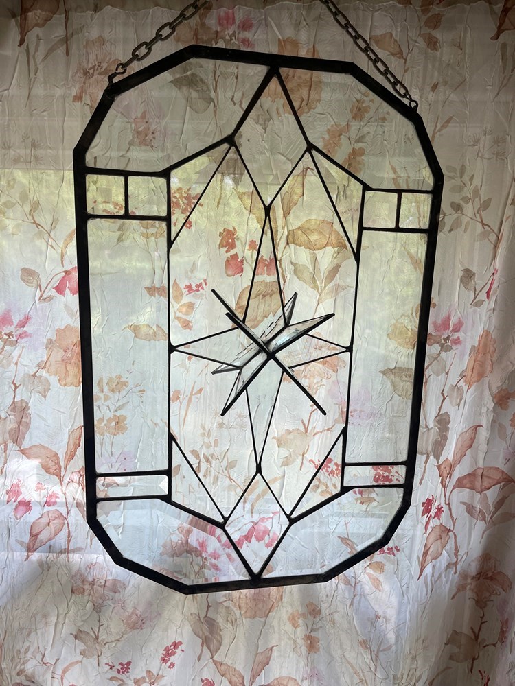 Exquisite hand made leaded cut glass three-dimensional hanging. Measures 14 1/2"x20".