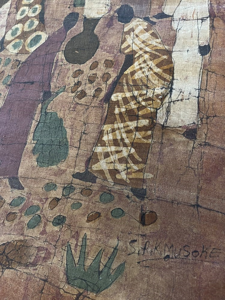 Beautiful vintage framed batik original art by Musohe. Measures 35"x33".